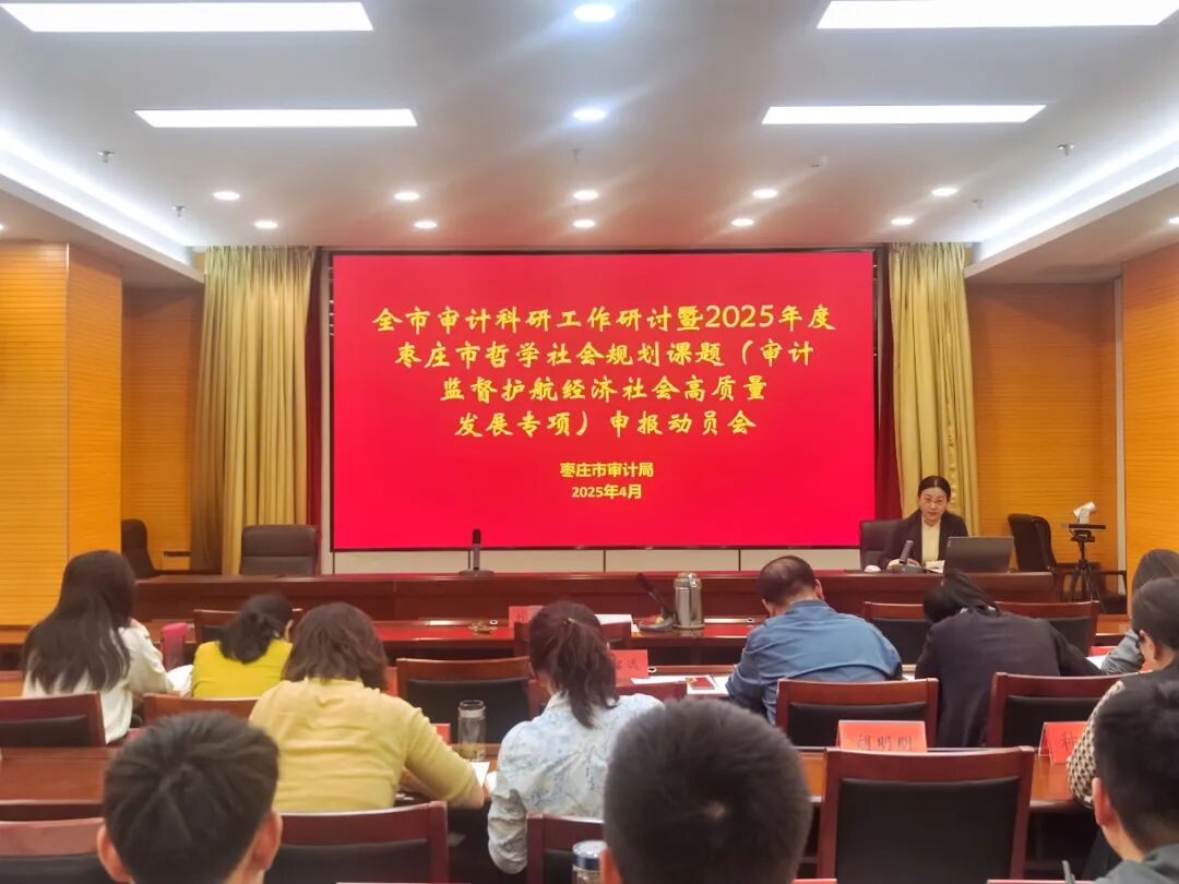 近日,市审计局召开全市审计科研工作研讨暨2025年度枣庄市哲学社会规划课题(审计监督护航经济社会高质量发展专项)申报动员会,总结2024年工作,部署2025年任务,推动全市审计科研工作取得新实效、再启新篇章。市审计局副局长刘锦平主持会议并讲话。