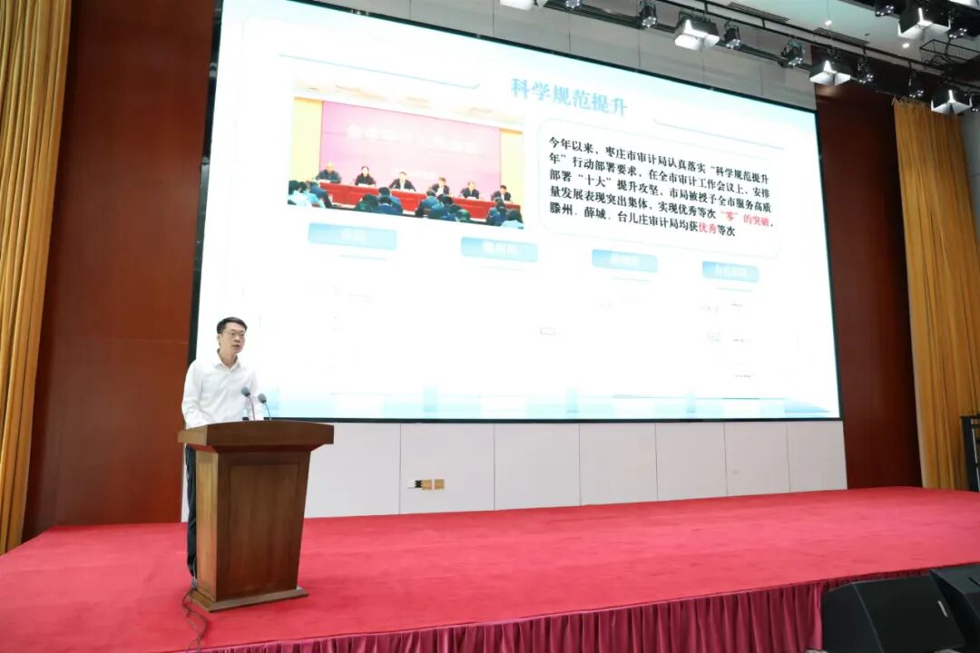近日,省审计厅举办全省审计机关“科学规范提升年”推进会,省审计厅党组书记、厅长张晓峰出席并讲话。枣庄市审计局作为四个代表地市局之一,以“树牢‘一盘棋’理念 强化全链条贯通 推动审计工作科学规范提升”为题作典型发言。